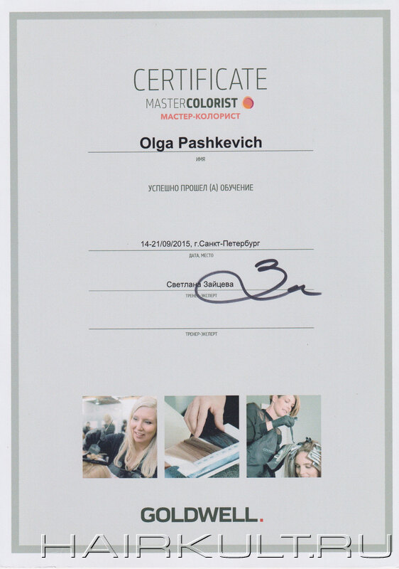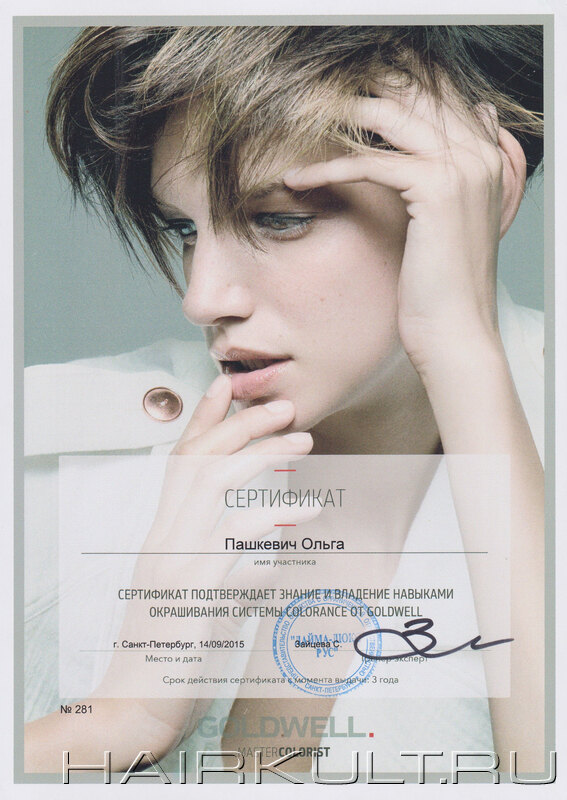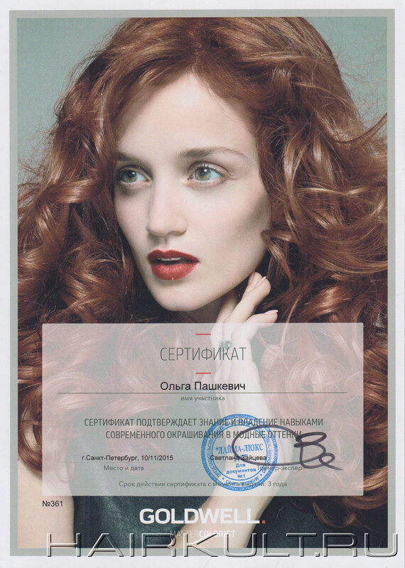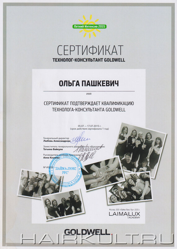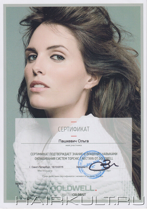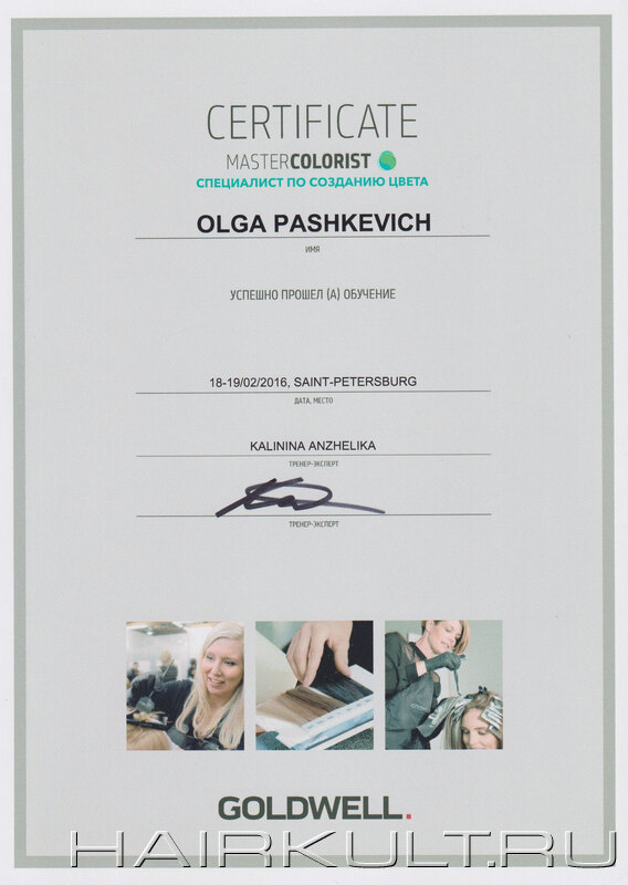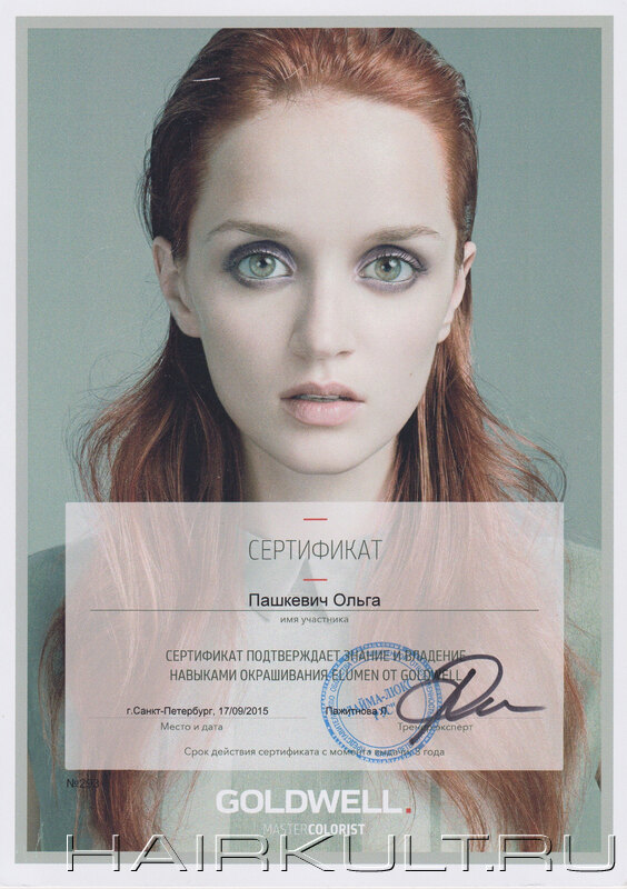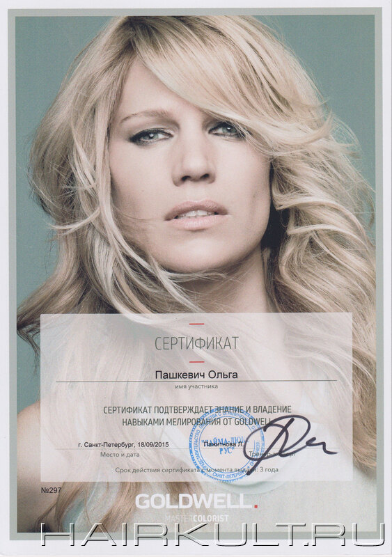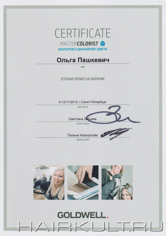 подтверждение квалификации "Технолог-консультант Goldwell" |