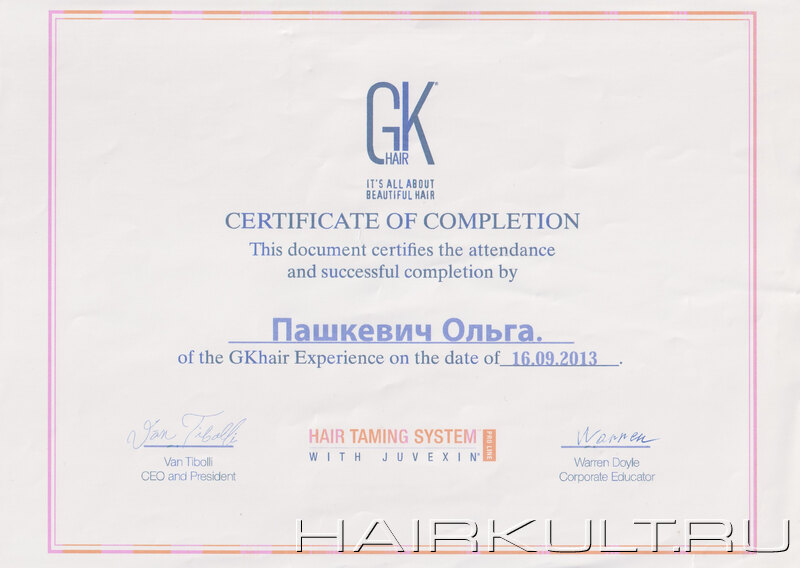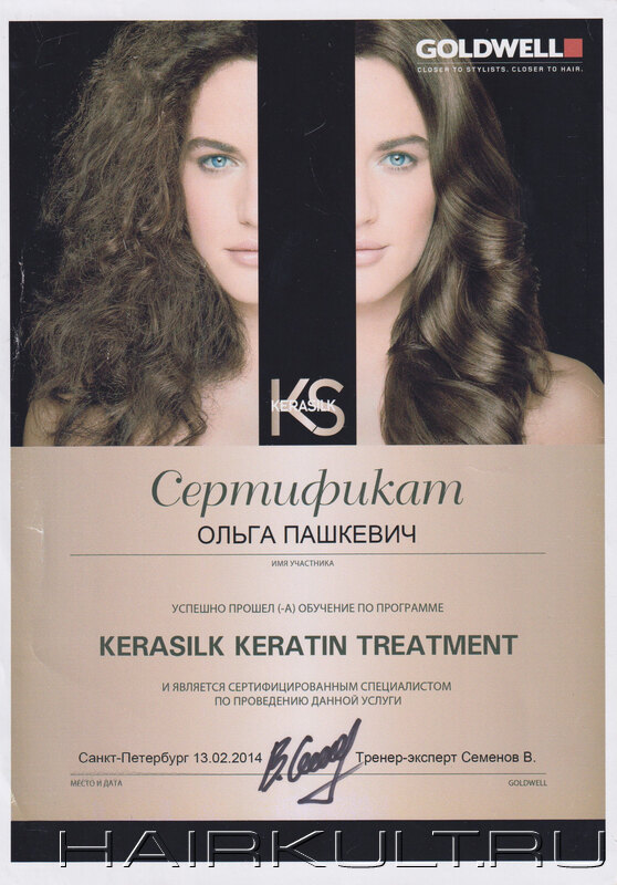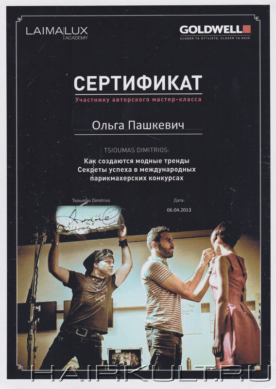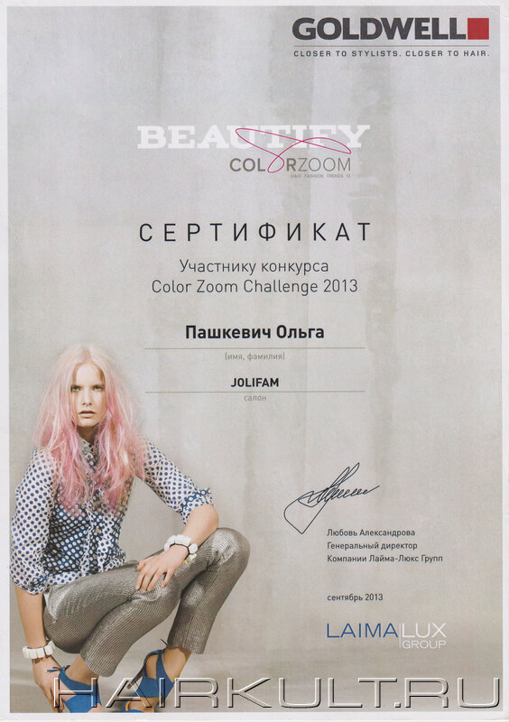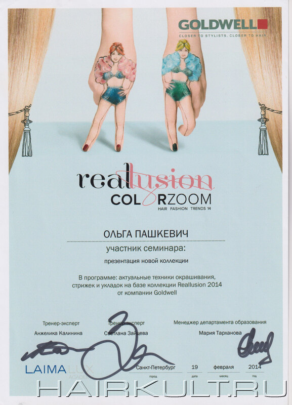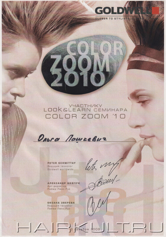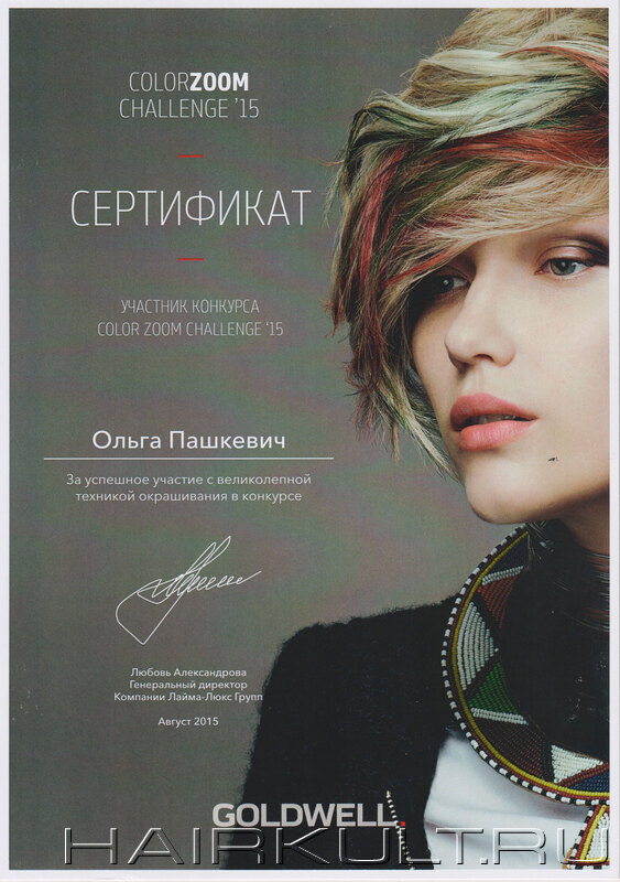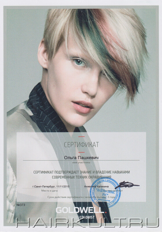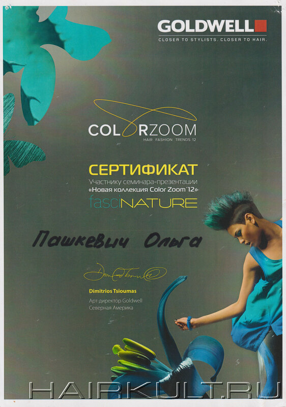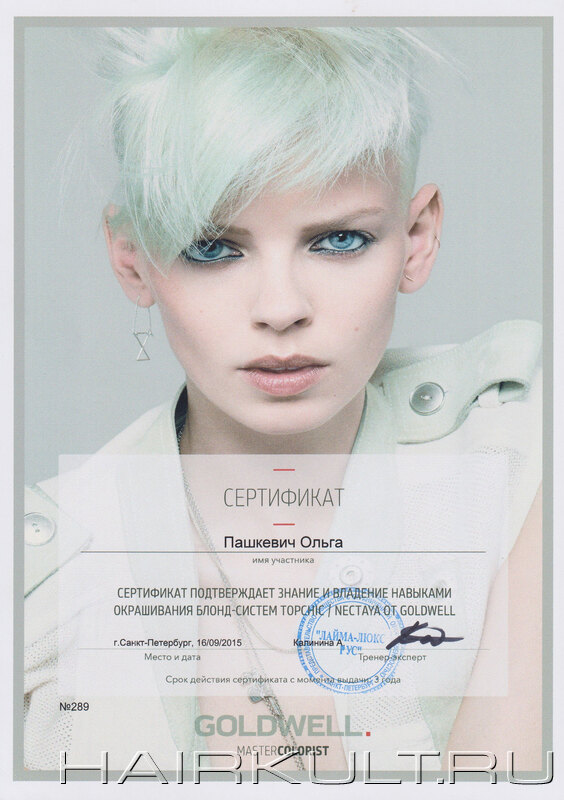 подтверждение квалификации "Технолог-консультант Goldwell" |