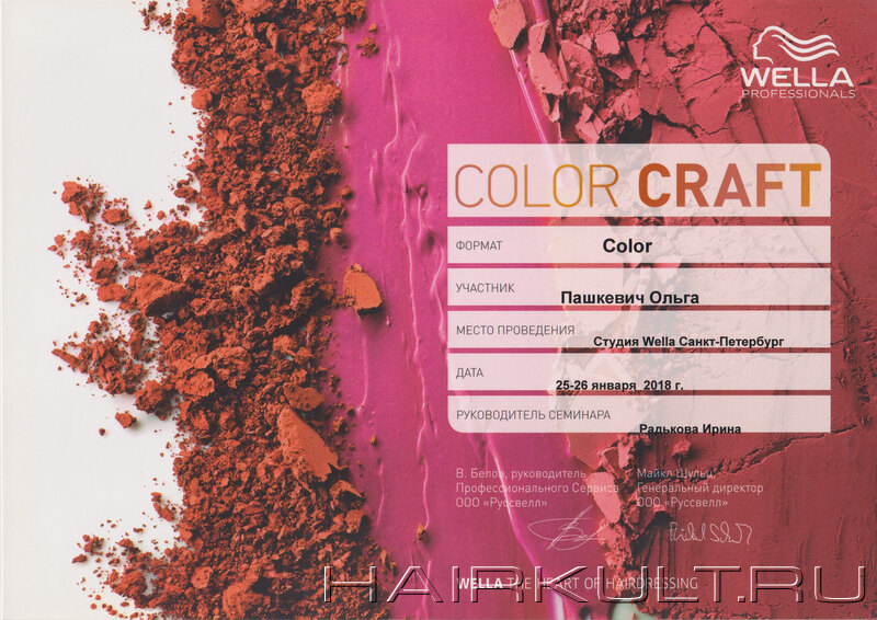 обучение и экзамен "Мастер-Колорист" |