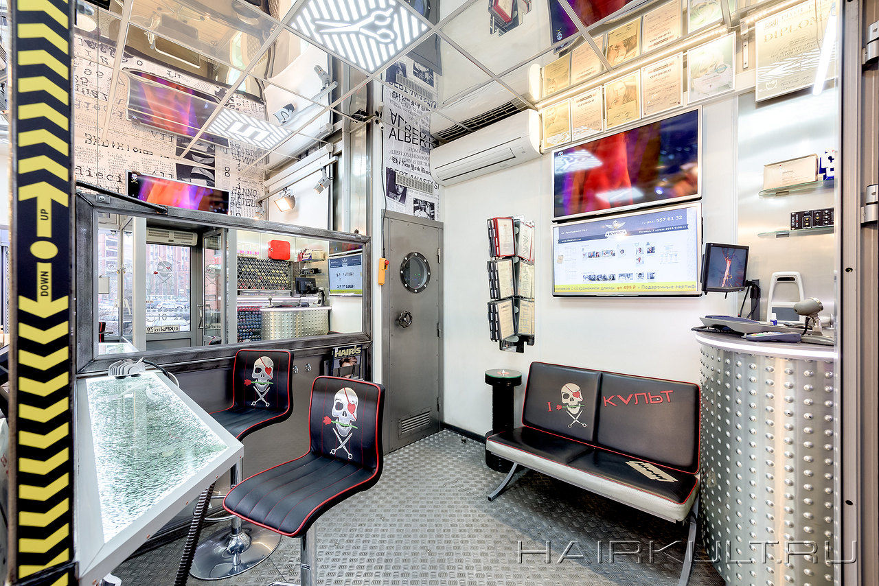 Уникальный интерьер салона наполнен нестандартными решениями и мелочами.