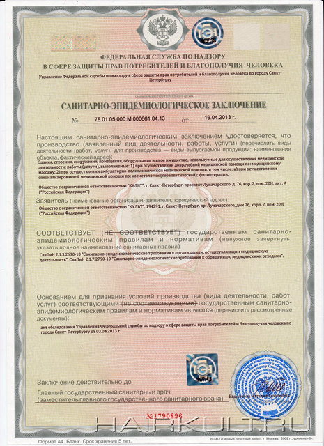 Услуги салона сертифицированы по системе ГОСТ Р. На косметологические услуги есть медицинская лицензия